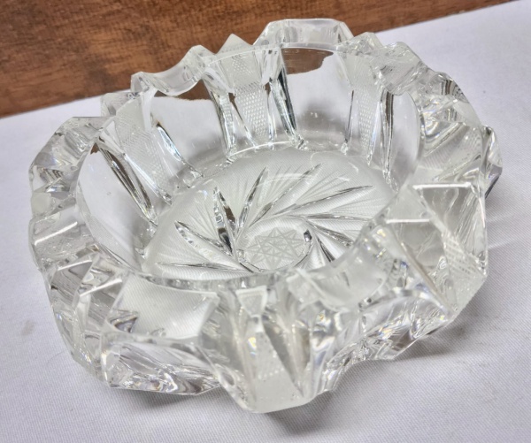• REPÚBLICA TCHECA - Elegante e lindo cinzeiro, executado finamente em antigo cristal da Bohemia de excelente qualidade e manufatura, adornado por clássica e rica variação de lapidações em tonalidade translúcida. Perfeito estado de conservação, mede 5 cm de altura x 14 cm de diâmetro da borda. Rep. Tcheca meados do Século XX.