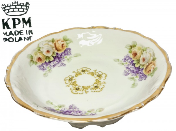 • Krister Porzellan-Manufaktur - KPM - POLÔNIA - Raro e belíssimo prato de serviço / centro de mesa, executado finamente em porcelana de excelente qualidade e manufatura, adornado por linda ornamentação floral e ricos filetes á ouro. Perfeito estado de conservação, mede 6 cm de altura x 19 cm de diâmetro da borda. Polônia meados do Século XX.