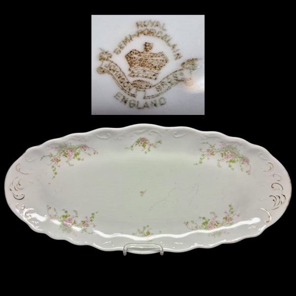 • JOHNSON BROS - INGLATERRA INÍCIO SÉC. XX - Grandiosa e linda travessa de coleção, executada em faiança de excelente qualidade e manufatura, belíssima ornamentação floral e filetes á ouro. Mede 62 x 29 cm. Bom estado de conservação, desgastes nos filetes á ouro somente.