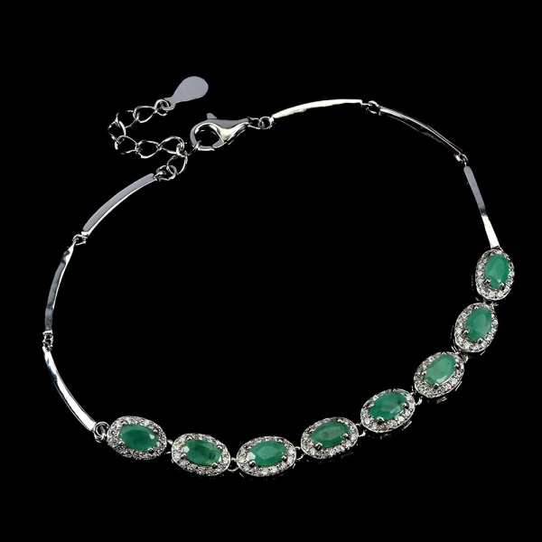 • Majestosa pulseira em prata de lei espessurada a ouro branco, design moderno exclusivo de excepcional ourivesaria com preciosa cravação de Esmeraldas de 5.0 x 3.0 mm, clássica lapidação oval brilhante, adornadas por rico trabalho, belíssimas coroas de Zirconias extra brancas e fino acabamento. Perfeito estado de conservação, sem uso . Mede aprox 20 cm de comprimento x 0,6 cm. Origem Colômbia. OBS: FORMA CONJUNTO COM O LOTE Nº 482 E 483.