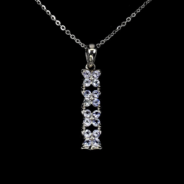 • Belíssimo colar em prata de lei espessurada a ouro branco, design exclusivo de excepcional ourivesaria. Pingente floral com preciosa cravação de Tanzanitas de 2.0 mm, clássica lapidação brilhante, adornada por rico trabalho e fino acabamento. Perfeito estado de conservação, sem uso. Corrente com clássica malha elo português, mede 45 cm, pingente 3,0 x 0,6 cm. Origem Tanzânia e África.