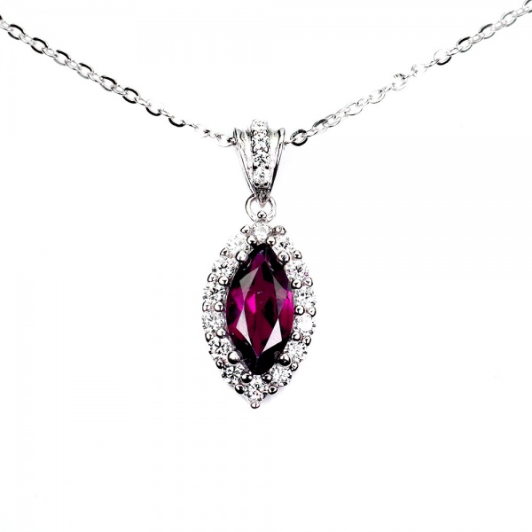 • Majestoso colar em prata de lei espessurada a ouro branco, design exclusivo de excepcional ourivesaria. Pingente com preciosa Granada Rodolita extra de 10 x 5.0 mm, clássica lapidação marquise brilhante, adornada por rico trabalho, fino acabamento e majestosa coroa de Topázios extra brancos de lapidação brilhante. Perfeito estado de conservação, sem uso. Corrente com clássica elo português, mede 45 cm, pingente 2,0 x 0,8 cm. Origem África e Brasil.