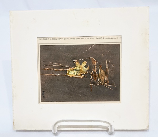 • NELSON RAMOS (URUGUAI, 1932 - 2006) - ´´ESTUDO PINTURA ACRÍLICA´´ - Raríssima e linda pintura executada finamente em técnica de acrílico sobre cartão. Representando bela cena abstrata rica em movimentos e colorações. Assinada e datada de 1976 no C.I.D. Possui bibliografia no verso da obra. Perfeito estado de conservação. Mede 8,5 x 11,5 cm. NOTA SOBRE O ARTISTA: Nos anos 50, estudou na Escola Nacional de Belas Artes do Uruguai. Posteriormente, com apoio de uma bolsa de estudos, teve aulas de gravura com Iberê Camargo no Rio de Janeiro, período em que atuou como ilustrador em jornais brasileiros.Em 1962, foi agraciado com uma bolsa que lhe permitiu visitar Espanha, Itália e França e aprimorar seus conhecimentos em artes plásticas. Em 1981, foi contratado pelo College of Art and Design de Minneapolis, EUA, e em 1992 esteve como artista residente no College of Art de Boston.Recebeu diversos prêmios, como o Grande Prêmio de Pintura na I Bienal de Jovens Pintores do Uruguai, em 1961; o Prêmio Aquisição do Salão Municipal de 1956, 1958, 1962 e 1967, em Montevidéu; e prêmio da ECO ART do Rio de Janeiro, em 1992. Participou de diversas Bienais - em Córdoba, Argentina; no Brasil, da Bienal Internacional de São Paulo (VII, X e XVII); na Itália, da Bienal de Veneza (XLVII); e em Cuba, da IV Bienal de Havana, entre outras.Suas obras podem ser encontradas em importantes museus dos EUA, Espanha, Brasil, Uruguai e Argentina.Vera Filinto