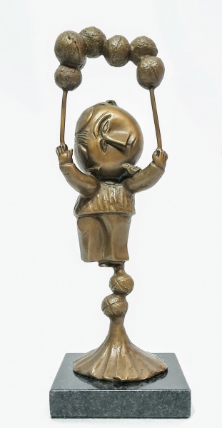 • INOS CORRADIN com certificado - ''Equilibrista'' - 47 de 100 - Raríssima e belíssima escultura em bronze patinado de excelente fundição e qualidade escultórica, elegantemente montada sobre base de granito preto. Assinado Inos numerado 47 de 100. Perfeito estado de conservação. Mede 27,5 x 10 x 10 cm. Acompanha certificado de autenticidade emitido pelo artista e registrado em cartório. NOTA: Artista premiado e catalogado.1929 Nasce em 14 de novembro, em Vogogna, Piemonti, Itália. Com alguns meses seus pais transferem-se para Montreaux, Suíça Francesa, onde permanece até os 5 anos de idade. Depois, volta para a Itália, em Castelbado, Província de Padova, terra de seus pais, onde passa a infância e juventude. 1945Estuda pintura com o professor Tardivello. 1947Colabora com o pintor Pendini na execução de um mural alusivo aos mártires da resistência italiana, em Castelbaldo, Padova Itália. 1950Chega ao Brasil, estabelecendo-se em Jundiaí, São Paulo. 1951Conhece o pintor argentino Osvaldo Navarro que dirige o Atelier Cooperativa Politone na Vila Mariana, São Paulo. É convidado a fazer parte do núcleo artístico do qual participam, entre outros, os pintores: Ian Woronieki e Geraldo Trindade Leal e mais cinco pintores. 1952Convidado a participar do II Salão Paulista de arte moderna de São Paulo. 1953Chega a Salvador da Bahia com o pintor Trindade Leal. Conhece o grupo artístico baiano da época: Mário Cravo Júnior, Rubens Valentin, Aguinaldo dos Santos, Caribè, Raimundo de Oliveira, Pancetti, Jenner Augusto, Wilson Rocha e Mirabeau Sampaio, o crítico Wilson Rocha e o cantor e compositor Dorival Caymmi. 1954Convidado a participar do Salão Nacional de Arte Moderna do Rio de Janeiro.Osvaldo Gil Navarro o convida a participar da equipe de cenógrafos do Ballet do IV Centenário de São Paulo. Executa cenários para ballet e peças teatrais para Rugero Giacobbi e Aldo Cravo.1955Continua ativo como cenógrafo. 1957Começa uma nova fase de sua vida. Chega a Ibiúna, São Paulo, onde pinta e trabalha com os madeireiros que na época tinham na madeira sua principal fonte de economia, de onde extraia madeira para sua pequena fábrica de brinquedos. Nesta cidade, conhece o seu primeiro e mais importante marchand: Américo Reisfeld, que após cessar suas atividades é sucedido por seu genro, o Sr. Josef Bar-Tzion, que o representa em diversas exposições internacionais. 1960Casa-se com Maria Helena Rolin Carmelo com a qual teve três filhos. 1976É representado pela Sra. Carla Surian Albori com exclusividade européia. 1977Faz sua primeira exposição individual na Galeria de Arte André São Paulo, hoje denominada Nova André Galeria, onde trabalhou com exclusividade para André Blau, desde o começo da década de 60. 1979Contratado para pintar um cenário 8 x 11m para o teatro de Rovigo Itália 1990A Prefeitura de Jundiaí adquire 5 obras, com motivos religiosos, que estão expostos no Velório Municipal Adamastor Fernandes. 1993A Prefeitura Municipal de Jundiaí lhe presta uma homenagem pelos seus 40 Anos de Pintura, organizando uma exposição retrospectiva no Paço Municipal Nova Jundiaí, com obras emprestadas por inúmeros colecionadores. 1997Lança o livro La Visione Incantata na Nova André Galeria, em S.Paulo, com uma exposição. (livro lançado simultaneamente no Brasil e na Europa), lançado por Edas Edizioni DArte Surian. 2001Lança seu livro Venticinque Anni di mostre in Europa, lançado por Edas Edizioni DArte Surian. 2002A Companhia Italiana Costa Navegações lança ao mar o navio Costa Atlântica em Veneza e o contrata para decorar suas cabines com 800 serigrafias e 42 óleos sobre tela.Passa a fazer parte dos anais da Câmara Federal com discurso feito pelo Deputado Federal André Benassi ressaltando sua importância na pintura no Brasil e exterior. 2004Comemora 50 anos de pintura com uma super exposição no Hotel Intercontinental, na Al.Santos em S.Paulo, onde lançou seu livro 50 Anos de Pintura, editado por Auderi Martins. 2005É solicitado pela Prefeitura Municipal de Jundiaí, através do Prefeito Ary Fossen para criar um selo comemorativo dos 350 anos da cidade. Este selo também foi lançado pela Empresa Brasileira de Correios e Telégrafos. 2006É homenageado pela Associação Terapêutica de Estimulação Auditiva e Linguagem - ATEAL, juntamente com a Prefeitura Municipal de Jundiaí, em função de sua benemerência com as crianças assistidas dessa ONG, que inclusive reproduziram de forma singular algumas de suas obras. 2007Pinta o óleo sobre tela Tributo à Serra do Japi (l,80 x 9,00m), cuja réplica transformada num painel de 9,00 e 4,5 metros, encontra-se em exposição permanente na Rodoviária de Jundiaí, a convite do Prefeito Ary Fossen. 2008Lançamento do documentário INOS que traça um panorama de sua vida artística nos seus 56 anos de carreira, bem como curiosidades de sua vida pessoal. 2009Ano em que Inos completa 80 anos. As comemorações começaram em maio, na Itália, onde ele foi homenageado pela Prefeitura de Padova, através do Prefeito Flavio Zanonato, com uma exposição num Palácio Medieval do século XVI, na Salla della Gran Guardia na Piazza dei Signori.Em setembro, Inos fecha as comemorações com uma grande exposição na Nova André Galeria, onde trabalhou com exclusividade por 30 anos. Inos retorna à sua velha casa, depois de percorrer um longo caminho com mais de 200 exposições internacionais.Ainda em 2009,lança a 2ª edição do livro 50 Anos de Pintura com uma noite de autógrafos na Livraria da Vila, Al.Lorena em S.Paulo; 2010A Prefeitura de Jundiaí, por iniciativa do prefeito, Sr. Miguel Haddad, presta-lhe uma homenagem pelos seus 80 anos com uma exposição de esculturas e fotos de sua carreira ao lado de familiares e celebridades do mundo das artes, da música e da política nacional e internacional. O momento mais emocionante da homenagem foi o espetáculo musical, organizado por sua assessora S