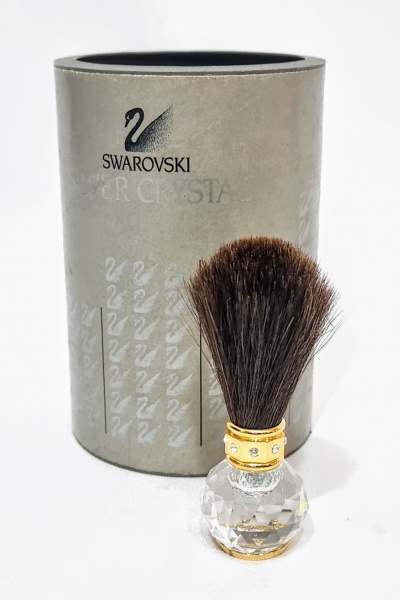 • SWAROVSKI - Lindíssimo e raro pincel, base em formato de esfera em cristal de excelente qualidade e luminescência, rico acabamento com metal dourado e cravação de cristais. Perfeito estado de conservação, não aparenta uso. Acondicionado em caixa original. Mede 7,5 cm de altura.