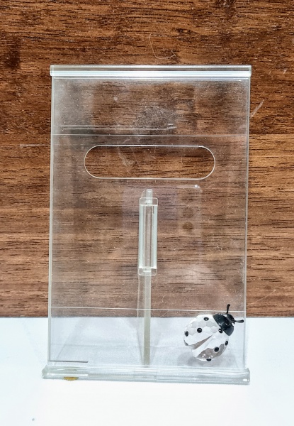 • SWAROVSKI, ÁUSTRIA - Lindíssimo porta retratos executados em acrílico, adornado por delicada e bela joaninha abaixo em cristal Swarovski de ótima qualidade com extraordinária luminescência e rico acabamento. Perfeito estado de conservação, mede 14,0 x 9,0 cm.