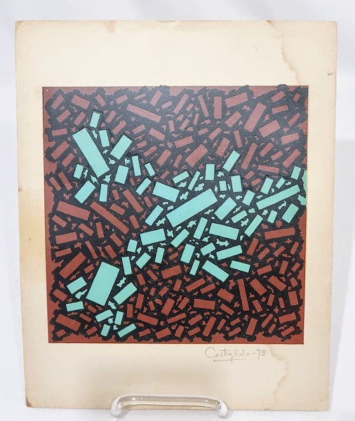 • JOSÉ Pedro COSTIGLIOLO (URUGUAI, 1902 - 1985) - ´´RECTANGULOS XLIX´´ - Raríssima e autêntica linda gravura, representando clássico motivo abstrato do artista, rico em movimentos e colorações. Assinada e datada de dezembro de 1975 no C.I.D. e verso. 250 exemplares da obra, possui número de registro no verso (EDICIONES DELTREBOL). Bom estado de conservação. Mede 24 x 30 cm. NOTA SOBRE O ARTISTA: José Pedro Costigliolo (Montevideo, 6 de noviembre de 1902 - Montevideo, 3 de junio de 1985) fue un pintor uruguayo, precursor del arte no figurativo de su paísBiografíaCostigliolo Estudió con Vicente Puig y Guillermo Laborde en el Círculo de Bellas Artes entre 1921 y 1925. Fue fundador del Grupo de Arte No-figurativo en 1952 junto a su esposa María Freire. Entre 1957 y 1959 se especializó en la técnica del vitral en Europa, usufructuando una beca obtenida en el III Salón Bienal de Artes Plásticas.1Investigador y precursor de la estética concreta no figurativa, sus composiciones geométricas se caracterizan por una creciente simplificación. Adhiere con entusiasmo las teorías de los constructivistas rusos y los neoplasticistas holandeses.1ExposicionesExpuso en el Museo de Arte Moderno de San Pablo (1956), Museo de Arte Moderno de Río de Janeiro (1957), Ateneo Barcelonés, Barcelona (1958), Unión Panamericana, Washington (1966), etc. En 1983 realizó una gran muestra retrospectiva organizada por la Intendencia de Montevideo y otra exposición individual en la Alianza Francesa. A lo largo de su carrera participó en numerosas exposiciones en su país y el exterior.PremiosRecibió premios en concursos y salones de arte como el 1.er. Premio en el concurso de Afiches de Palacio de la Música (1929), 1.er. Premio de acuarela y la Beca de Pintura en el III Salón Bienal Nacional (1957), 1.er. Premio Medalla de Oro del Salón Nacional (1966), entre otros.Obras de su autoría integran destacadas colecciones de arte latinoamericano como la Colección Essex, Cifo y Cisneros Fontanal,2 así como el acervo de museos como Museo Nacional de Artes Visuales de Montevideo, Museo Juan Manuel Blanes, Museo de Arte Moderno de São Paulo, Museo de Arte Moderno de Río de Janeiro, Museo de Arte Contemporáneo (Madrid) y Museo Nacional Centro de Arte Reina Sofía, entre otros.3