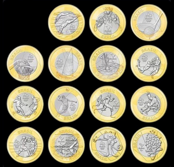 • Lote Composto por 15 moedas de 1 Real comemorativas das Olimpíadas e Paraolimpíadas do Rio de Janeiro 2016. Sendo: Mascote das Olimpíadas Vinicius, Mascote das Olimpíadas Tom, rúgbi, canoagem, natação, basquete, boxe, judô, vela, vôlei, futebol, golfe, paratriatlo, natação paralímpica e atletismo paralímpico. Ambas em perfeito estado de conservação, ditas flor de cunho.