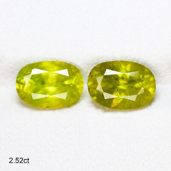 • Precioso par de Belíssimas Titanitas Extra de excepcional qualidade e clareza, belíssima lapidação oval brilhante, totalizando 2.55 cts medidas 7.62 x 5.38 x 3.70 mm. Origem Rússia. Perfeito estado de conservação. Excelente investimento para monta uma joia de qualidade.