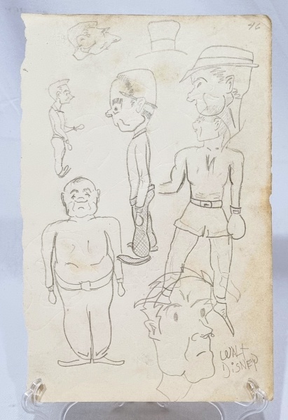• WALT DISNEY - ESTUDO - COLEÇÃO ROLAND E. HILL - COM CARTA DE PROVENIÊNCIA E HISTÓRIA DA ARTE DE STEVEN HILL - DESENHO ESTUDO EM TÉCNICA DE GRAFITE  SOBRE PAPEL ATRIBUÍDA AO BRILHANTE WALT DISNEY, REPRESENTANDO EXPRESSIVAS FIGURAS RICA EM MOVIMENTOS, ASSINADA NO NO C.I.D. E NUMERADA DE NUMERO 46 NO C.S.D. MEDE 18 X 28CM. BOM ESTADO DE CONSERVAÇÃO. COMITENTE ADQUIRIU OBRAS DE PICASSO E WALT DISNEY JUNTO AO NETO DE ROLAND E. HILL (STEVEN HILL). O MESMO ENVIOU UM DOCUMENTO JUNTO AS OBRAS COM NOME DO COMPRADOR DECLARANDO A VERACIDADE E PROVENIÊNCIA DA OBRA POR SEU AVÔ SER PRÓXIMOS AOS ARTISTAS SUPRACITADOS. SEGUE ABAIXO O TEXTO TRADUZIDO E REDIGIDO, DOCUMENTO ANEXADOS NAS FOTOS EXTRAS: CARTA DE PROVENIÊNCIA E HISTÓRIA DA ARTE RELATIVA À OBRA DE ARTE PERTENCENTE E VENDIDA DA COLEÇÃO ROLAND E. HILLMeu nome é Steven Hill, e sou neto de Roland E. Hill, sendo o herdeiro de sua propriedade. Roland faleceu em 10 de novembro de 1986.Fui Diretor e Curador do Museu Pioneer Heroes em Casa Grande, Arizona. Anteriormente, atuei como Diretor de Marketing do Museu Western Desert Caballeros em Wickenburg, Arizona, bem como membro do conselho da Lizard Baron LLC Property Management, avaliador certificado de antiguidades e liquidante de espólios.Possuo três diplomas de Bacharelado na área de Ciências Sociais, um Mestrado em História Internacional pela London School of Economics, da Universidade de Londres, e um diploma de Direito pela West Virginia University. Também possuo certificação do Ashford Institute of Antiques em Destin, Flórida, com licença atual de avaliador. Estou no setor de gestão de arte e espólios há mais de 25 anos. Já assisti administradores de espólios na venda de obras de arte, avaliei obras e fui pessoalmente responsável por várias descobertas de obras-primas perdidas, que agora pertencem a coleções privadas. Minha família está envolvida com arte e design de interiores há mais de 80 anos, mantendo relações pessoais e profissionais com as equipes de produção da Walt Disney Corporation e projetando atrações na Disneyland, incluindo o Castelo da Bela Adormecida, projetado por Roland E. Hill em 1954.Aproximadamente há 10 anos, comecei a auxiliar no inventário e na venda de partes da coleção de arte de Roland E. Hill, composta por centenas de pinturas. Como neto dele, estou em uma posição única para autenticar e certificar que as pinturas a óleo vendidas da coleção montada por Roland são, definitivamente, provenientes de sua coleção. Ele as encontrou pessoalmente durante estadias na Europa e na França entre as duas guerras mundiais, aproximadamente de 1918 a 1924, e novamente em visitas periódicas nas décadas de 1930, 1940 e 1950.A coleção inclui obras de artistas como Pablo Picasso, André Derain, Raoul Dufy, Henri Matisse, Jean Cocteau, Man Ray, entre outros. Ele também colecionou arte da região central dos Estados Unidos e do Canadá. Outras pinturas foram adquiridas, trocadas ou descobertas em nosso acervo armazenado, incluindo obras de artistas contemporâneos como Clyfford Still, Jackson Pollock, Mark Rothko e Francis Bacon.Sem dúvida, as pinturas vendidas dessa coleção são antigas, como posso certificar. A construção, pregos, tinta, verniz e forma datam de antes da década de 1970, período em que métodos mais modernos de construção de telas e uso de papelão foram adotados pelos fabricantes. Grampos começaram a ser usados para fixar telas em esticadores de madeira em 1941. As pinceladas em óleo, a idade das telas, o verniz e as assinaturas dos artistas presentes nas pinturas que vendemos dessa coleção ou do inventário de nosso museu são consistentes com a caligrafia dos artistas, frequentemente verificadas por sistemas computacionais, e também com o estilo artístico do período correspondente.Recomenda-se que todas as pinturas vendidas da coleção de Roland sejam submetidas às respectivas fundações para inclusão em catálogos e para autenticação final, se necessário. Caso tenha dúvidas, entre em contato comigo nos Estados Unidos, no estado do Arizona ou de Idaho, onde resido. Meu telefone é 1-520-518-1046.Além disso, estamos vendendo obras da coleção Whiting-Smith, uma coleção de arte francesa datada de 1900 a 1940. Certificados de autenticidade específicos, confirmando a inclusão de obras dessa coleção em lotes, estão disponíveis.---Descrição:Roland E. Hill viajou pela Europa tanto por conta própria quanto como funcionário de diversos estúdios de cinema nas décadas de 1920, 1930, 1940 e 1950. Ele foi o responsável pelo projeto do Castelo da Disneyland para Walt Disney, seu amigo. Temos evidências de que ele conheceu vários artistas de renome em Paris, incluindo Picasso, em 1923 e novamente em 1951. (A foto anexa foi tirada em 1951 e a entrada do diário é de 1923).---Fotografias e registros:1. Fotografia em sépia (1951): Tirada durante uma festa em Paris, onde Roland E. Hill conheceu Pablo Picasso. Na ocasião, segundo suas próprias palavras, ele "tocou a mão que pintava do Mestre".2. Entrada do diário (22 de julho de 1923): Enquanto estudante de arte no Instituto Beaux Arts, em Paris, Roland escreveu:"Domingo. Sofri para sair às 7 horas hoje, mas choveu a maior parte da manhã e o resto da tarde. Amanhã sairei cedo para poder me encontrar com Picasso."---Certificação de Venda:Certifico que vendi ao  (COMITENTE NÃO DESEJA SE EXPOR) as seguintes obras da coleção Roland E. Hill: Obras citadas no documentoA caixa de arte de Roland E. Hill de 1925 pode ser visualizada no YouTube, pesquisando na barra de busca: "The 1925 crate of Roland E. Hill"---Declaração Final:As obras de arte vendidas da coleção de Roland estiveram em posse de nossa família desde que foram adquiridas por ele. Embora as datas exatas de aquisição não sejam, geralmente, determináveis, nossa proveniência atribui a propriedade das obras diretamente à pessoa que conheceu os artistas pesso