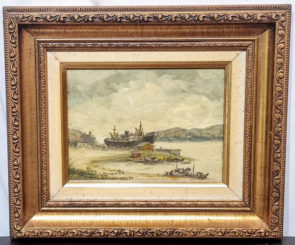 • MANLIO MORETTO (SP, 1917 - 2013, CAMPINAS-SP) - ´´ARRAIAL DO CABO´´ - 15 x 20 cm - Lindíssima e rara pintura finamente executada em técnica de óleo sobre placa, representando bela marinha da cidade carioca. Assinada e datada de 1994 no C.I.E. Enquadrada em moldura de madeira nobre patinada ricamente trabalhada medindo 34 x 28,5 cm. Perfeito estado de conservação. NOTA SOBRE O ARTISTA: 1917  Manlio Moretto nasce em São Paulo, no bairro de Vila Mariana. Seus pais, Antônio Moretto e Marcela Guerato, eram italianos oriundos, respectivamente, de Pádua e Verona.1927  Seus professores do curso primário pedem-lhe que desenhe Tiradentes, D. Pedro, flores, cavalos... Ginasiano do Colégio Nossa Senhora do Carmo, desenha o mapa do Brasil e tira solene zero, por não acreditar o professor que efetivamente fora ele quem fizera o trabalho.1934  Copia, amplia e dá o colorido ao quadro Bodas de Ouro de Arturo Ricci.1935  Ingressa no curso de Engenharia Civil da Escola Politécnica da Universidade de São Paulo.1939  Aprende Desenho Arquitetônico com o professor Francisco Prestes Maia.1942  Forma-se em Engenharia Civil e começa a trabalhar na Light.1943  Conhece o artista plástico Edgard Oehlmeyer.1953  Realiza incursões artísticas pelo Brasil na companhia de Oehlmeyer.1963  Ganha o 1º prêmio (Menção Honrosa), no Salão Paulista de Belas Artes.1967  Uma galeria de Curitiba recusa uma obra sua por se enquadrar na Escola Realista. O diretor pretende comprar a obra para si, mas Moretto recusa.1974  Exposição individual no Instituto de Engenharia de São Paulo.1977  Aposenta-se da Light no dia 06 de julho. No mesmo dia recebe oito convites de emprego, acabando por aceitar o da CESP, porque um amigo trabalhava lá  não sabendo sequer se o salário que iria receber superava o de outros convites de emprego.1983  Deixa de participar dos Salões de Belas Artes.1989  Na casa onde nasceu amplia o antigo quarto dos pais e faz seu novo atelier.1994  Aos 52 anos de profissão, aposenta-se definitivamente para terminar sua incomensurável obra artística: óleos esperando pelo retoque final.1998  Muda-se para o interior (Campinas), e constrói um grande estúdio, da largura da casa, no fundo do quintal.2000  Começa a pintar óleos de grandes dimensões.2007  Deixa a pintura a óleo e começa a pintar desenhos aquarelados em telas de grandes dimensões. ... Em cada elemento destacado pelo pintor, uma variada gama de informações registra testemunhos de histórias; reúne histórias e histórias com um forte poder de representação. Evidenciando uma observação nostálgica, faz valer as particularidades da sua visão do Brasil.