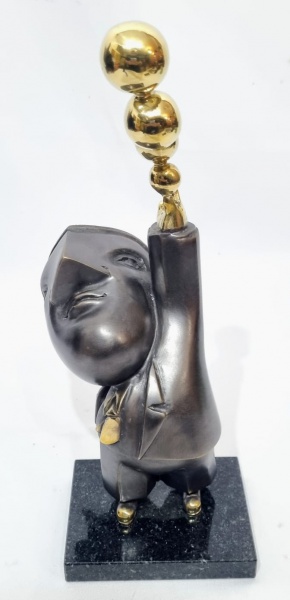 • INOS CORRADIN com certificado - ''Equilibrista'' - Elegante e belíssima escultura em rara técnica de bronze patinado de excepcional fundição e qualidade escultórica, elegantemente montada sobre base de mármore. Assinado Inos. Perfeito estado de conservação. Mede 34 x 13 x 10 cm. Acompanha certificado de autenticidade emitido pelo artista e registrado em cartório. NOTA: Artista premiado e catalogado.1929 Nasce em 14 de novembro, em Vogogna, Piemonti, Itália. Com alguns meses seus pais transferem-se para Montreaux, Suíça Francesa, onde permanece até os 5 anos de idade. Depois, volta para a Itália, em Castelbado, Província de Padova, terra de seus pais, onde passa a infância e juventude. 1945 estuda pintura com o professor Tardivello. 1947Colabora com o pintor Pendini na execução de um mural alusivo aos mártires da resistência italiana, em Castelbaldo, Padova Itália. 1950Chega ao Brasil, estabelecendo-se em Jundiaí, São Paulo. 1951Conhece o pintor argentino Osvaldo Navarro que dirige o Atelier Cooperativa Politone na Vila Mariana, São Paulo. É convidado a fazer parte do núcleo artístico do qual participam, entre outros, os pintores: Ian Woronieki e Geraldo Trindade Leal e mais cinco pintores. 1952Convidado a participar do II Salão Paulista de arte moderna de São Paulo. 1953Chega a Salvador da Bahia com o pintor Trindade Leal. Conhece o grupo artístico baiano da época: Mário Cravo Júnior, Rubens Valentin, Aguinaldo dos Santos, Caribè, Raimundo de Oliveira, Pancetti, Jenner Augusto, Wilson Rocha e Mirabeau Sampaio, o crítico Wilson Rocha e o cantor e compositor Dorival Caymmi. 1954Convidado a participar do Salão Nacional de Arte Moderna do Rio de Janeiro.Osvaldo Gil Navarro o convida a participar da equipe de cenógrafos do Ballet do IV Centenário de São Paulo. Executa cenários para ballet e peças teatrais para Rugero Giacobbi e Aldo Cravo.1955Continua ativo como cenógrafo. 1957Começa uma nova fase de sua vida. Chega a Ibiúna, São Paulo, onde pinta e trabalha com os madeireiros que na época tinham na madeira sua principal fonte de economia, de onde extraia madeira para sua pequena fábrica de brinquedos. Nesta cidade, conhece o seu primeiro e mais importante marchand: Américo Reisfeld, que após cessar suas atividades é sucedido por seu genro, o Sr. Josef Bar-Tzion, que o representa em diversas exposições internacionais. 1960Casa-se com Maria Helena Rolin Carmelo com a qual teve três filhos. 1976É representado pela Sra. Carla Surian Albori com exclusividade européia. 1977Faz sua primeira exposição individual na Galeria de Arte André São Paulo, hoje denominada Nova André Galeria, onde trabalhou com exclusividade para André Blau, desde o começo da década de 60. 1979Contratado para pintar um cenário 8 x 11m para o teatro de Rovigo Itália 1990A Prefeitura de Jundiaí adquire 5 obras, com motivos religiosos, que estão expostos no Velório Municipal Adamastor Fernandes. 1993A Prefeitura Municipal de Jundiaí lhe presta uma homenagem pelos seus 40 Anos de Pintura, organizando uma exposição retrospectiva no Paço Municipal Nova Jundiaí, com obras emprestadas por inúmeros colecionadores. 1997Lança o livro La Visione Incantata na Nova André Galeria, em S.Paulo, com uma exposição. (livro lançado simultaneamente no Brasil e na Europa), lançado por Edas Edizioni DArte Surian. 2001Lança seu livro Venticinque Anni di mostre in Europa, lançado por Edas Edizioni DArte Surian. 2002A Companhia Italiana Costa Navegações lança ao mar o navio Costa Atlântica em Veneza e o contrata para decorar suas cabines com 800 serigrafias e 42 óleos sobre tela.Passa a fazer parte dos anais da Câmara Federal com discurso feito pelo Deputado Federal André Benassi ressaltando sua importância na pintura no Brasil e exterior. 2004Comemora 50 anos de pintura com uma super exposição no Hotel Intercontinental, na Al.Santos em S.Paulo, onde lançou seu livro 50 Anos de Pintura, editado por Auderi Martins. 2005É solicitado pela Prefeitura Municipal de Jundiaí, através do Prefeito Ary Fossen para criar um selo comemorativo dos 350 anos da cidade. Este selo também foi lançado pela Empresa Brasileira de Correios e Telégrafos. 2006É homenageado pela Associação Terapêutica de Estimulação Auditiva e Linguagem - ATEAL, juntamente com a Prefeitura Municipal de Jundiaí, em função de sua benemerência com as crianças assistidas dessa ONG, que inclusive reproduziram de forma singular algumas de suas obras. 2007Pinta o óleo sobre tela Tributo à Serra do Japi (l,80 x 9,00m), cuja réplica transformada num painel de 9,00 e 4,5 metros, encontra-se em exposição permanente na Rodoviária de Jundiaí, a convite do Prefeito Ary Fossen. 2008Lançamento do documentário INOS que traça um panorama de sua vida artística nos seus 56 anos de carreira, bem como curiosidades de sua vida pessoal. 2009Ano em que Inos completa 80 anos. As comemorações começaram em maio, na Itália, onde ele foi homenageado pela Prefeitura de Padova, através do Prefeito Flavio Zanonato, com uma exposição num Palácio Medieval do século XVI, na Salla della Gran Guardia na Piazza dei Signori.Em setembro, Inos fecha as comemorações com uma grande exposição na Nova André Galeria, onde trabalhou com exclusividade por 30 anos. Inos retorna à sua velha casa, depois de percorrer um longo caminho com mais de 200 exposições internacionais.Ainda em 2009,lança a 2ª edição do livro 50 Anos de Pintura com uma noite de autógrafos na Livraria da Vila, Al.Lorena em S.Paulo; 2010A Prefeitura de Jundiaí, por iniciativa do prefeito, Sr. Miguel Haddad, presta-lhe uma homenagem pelos seus 80 anos com uma exposição de esculturas e fotos de sua carreira ao lado de familiares e celebridades do mundo das artes, da música e da política nacional e internacional. O momento mais emocionante da homenagem foi o espetáculo musical, organizado por sua assessora Sandra Carnio, chamad