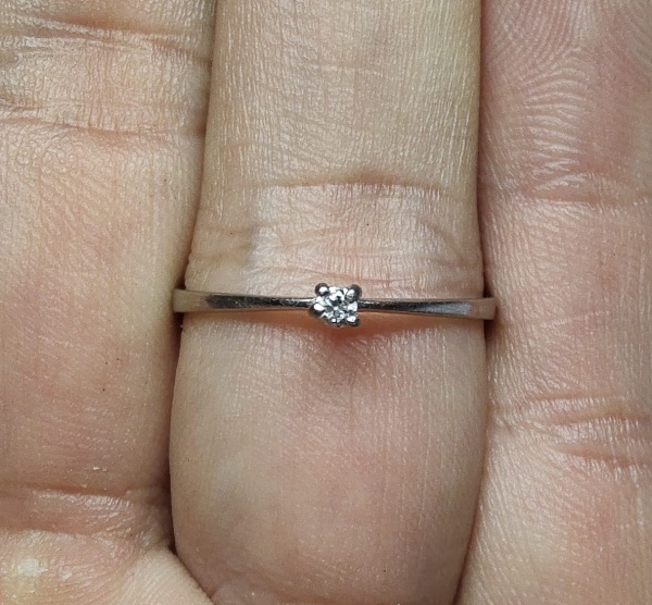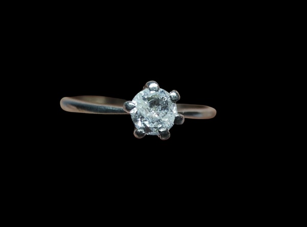 • CLÁSSICO ANEL SOLITÁRIO DE PLATINA TEOR 950 COM DIAMANTE DE 20 PONTOS. ARO MEDE 1,8 CM. PESO 1.9 GRAMAS. BRILHANTE COM FISSURA APARENTE. ARMAÇÃO EM BOM ESTADO.