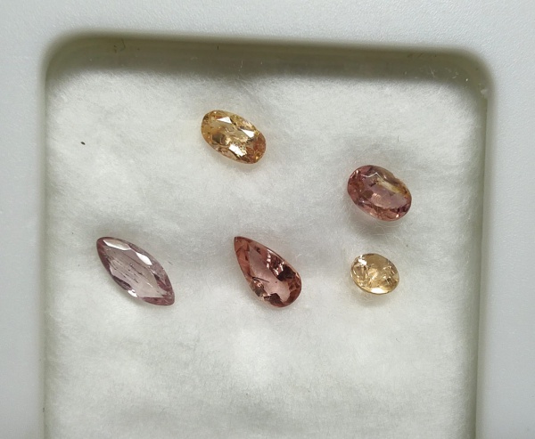 • Lindo Lote composto por 05 Preciosos e raros Topázios Imperial Extra pêssego, mel e rosa lilás, totalizando 2.020 cts, Excelente qualidade AAA e clareza transparente , clássicas lapidações diamante, gota, navete e oval brilhante, medindo aprox 8.0 x 4.0 mm, 7.0 x 4.0 mm, 6.0 x 4.0 e 4.0 mm. Ótimo investimento para montar uma joia de qualidade . Origem Brasil . Acondicionadas em caixa acrílica .