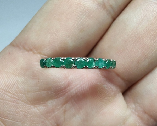 • CLÁSSICO E BELÍSSIMO ANEL DITO MEIA ALIANÇA EM OURO BRANCO 18 K TEOR 750, FEITIO DE EXCEPCIONAL OURIVESARIA COM PRECIOSA CRAVAÇÃO DE 10 ESMERALDAS LAPIDAÇÃO BRILHANTE ANTIGA, TOTALIZANDO APROX 0.25 CTS. EXCELENTE ESTADO DE CONSERVAÇÃO. ARO MEDE 1,8 CM. PESO TOTAL 1.6 G .
