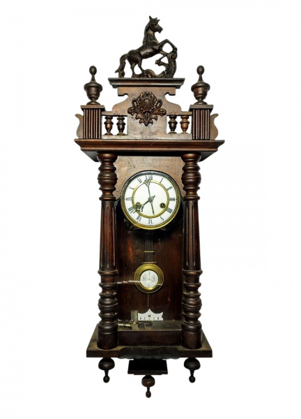 • UHREN MULLER GERMANY - RARO RELÓGIO DE PAREDE CARRILHÃO DITO CAVALINHO, FINAMENTE EXECUTADO EM BELÍSSIMA CAIXA DE MADEIRA NOBRE, DECORADA COM RICO ENTALHE E FINO ACABAMENTO. MOSTRADOR ESMALTADO COM ALGARISMO ROMANO. MAQUINÁRIO ORIGINAL COM MECANISMO A CORDA FUNCIONANDO NO ESTADO '' TOCA DE TRINTA EM TRINTA MINUTOS '' . RARA MANUFATURA UHREN MULLER, ALEMANHA FINAL DO SÉCULO XIX. EXCELENTE ESTADO DE CONSERVAÇÃO, ACOMPANHA CHAVE. MEDE APROX 94 X 34 X 18 CM. PRECISA DE REVISÃO 01 CORDA ESTÁ APARENTEMENTE TRAVADA, A OUTRA NORMAL.