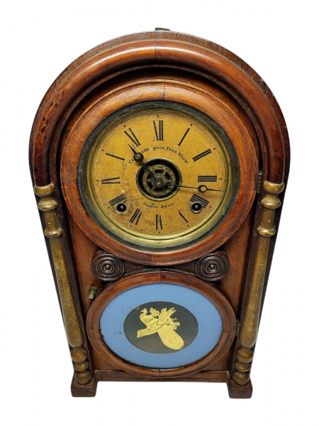 • ANSÔNIA USA - RARO RELÓGIO DE MESA OU PAREDE PRODUZIDO PARA JUAN SHAW ( BUENOS AYRES ) FINAMENTE EXECUTADO EM CAIXA DE MADEIRA NOBRE, DECORADA COM RICO TRABALHO, VIDRO ESMALTADO E FINO ACABAMENTO. MAQUINÁRIO ORIGINAL COM MECANISMO A CORDA NO ESTADO. USA INICIO DO SÉCULO XX. CAIXA EM ÓTIMO ESTADO DE CONSERVAÇÃO. ACOMPANHA CHAVE. MEDE 45 X 25 X 10 CM. DEVIDO AO TEMPO PARADO É INDICADO REVISÃO.