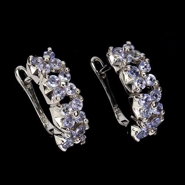 • Belíssimo par de brincos em prata de lei espessurada a ouro branco, design moderno exclusivo de excepcional ourivesaria com preciosa cravação de Tanzanitas de 2.0 mm, clássica lapidação brilhante, adornadas por rico trabalho e fino acabamento. Perfeito estado de conservação, sem uso. Medem 1,7 x 0,5 cm. Origem Tanzânia e África.