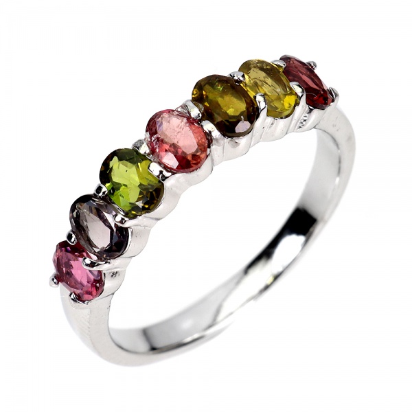 • CLÁSSICO ANEL MEIA ALIANÇA EM PRATA DE LEI ESPESSURADA A OURO BRANCO, DESIGN EXCLUSIVO DE EXCEPCIONAL OURIVESARIA COM PRECIOSA CRAVAÇÃO DE TURMALINAS MULTI COLORIDAS DE 4.0 X 3.0 MM, CLÁSSICA LAPIDAÇÃO OVAL BRILHANTE, ADORNADAS POR RICO TRABALHO E FINO ACABAMENTO. PERFEITO ESTADO DE CONSERVAÇÃO, SEM USO. ARO MEDE 1,8 CM. ORIGEM NIGÉRIA.