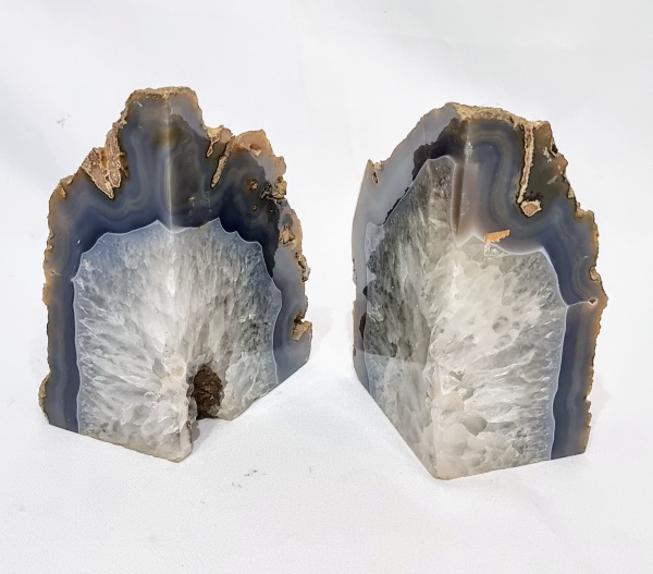 • Elegante par de serra livros, em Geodo de Ágata natural. Perfeito estado de conservação. Mede 17,5 cm de altura cada aproximadamente.