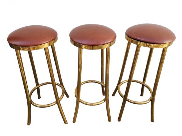 • LOTE COMPOSTO POR TRÊS ELEGANTES BANQUETAS EM METAL DOURADO DE EXCELENTE FUNDIÇÃO COM ASSENTO GIRATÓRIO E ESTOFADO EM COURO. CONJUNTO EM ÓTIMO ESTADO DE CONSERVAÇÃO, ESTRUTURA FIRME E COURO PRESERVADO. MEDEM APROX 74 CM DE ALTURA X 30 CM DE DIÂMETRO, CADA.