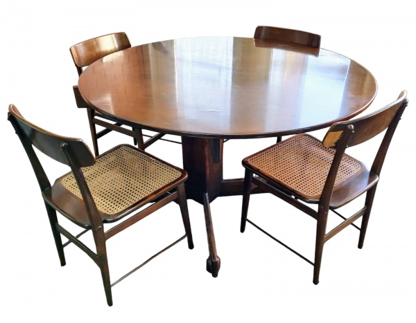 • SERGIO RODRIGUES - Elegante conjunto composto por uma bela mesa modelo ''Alex'' e quatro clássicas cadeiras modelo "Lucio Costa". Conjunto finamente executado em jacarandá da Bahia em excelente estado de conservação. Mesa e cadeiras com estrutura firme, palhinha preservada com discretas marcas de uso. Brasil meados de 1950/60. Vídeo no whatsapp (19)97408-0251.
